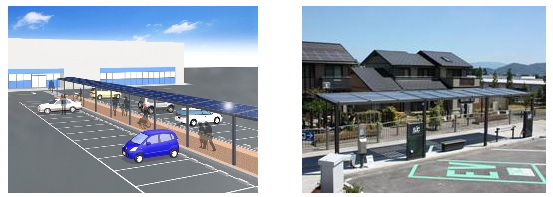 Images of various Eco-Shell applications The shelter combines SJC's conventional multi-purpose shelter unit with a Kyocera solar power generating system and energy-efficient LED lighting to create an eco-friendly weather covering alternative to those often found at bus stops and other public spaces. Once the product goes on sale later this month, the two companies will propose its use for a wide range of applications across Japan.