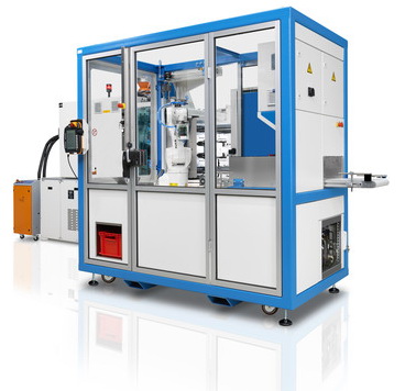 At Fakuma, the new CX 160 Multinject will prove to be an impressive production cell, with compact dimensions, flexible operation and robot types that are ideally adapted to the machines. The standardized automation cell is docked on the operator rearside of the machine, particularly on multi-component machines with V units. The mobile robot cell provides high flexibility in production, and can move from one machine to the other and connect without significant effort. The core of the machine is a small robot from the Kuka-Agilus series, with a payload of 6 kg and a range of 900 mm. The main feature of this industrial robot is a high working speed and equally high precision. The integration of robot cells into the machine control system is a particularly appealing option. As with the fixed pendant installed on the machine, the injection moulding machine can be operated via the handheld pendant of the robot control system. Conversely, the operator can control the automation cell via the MC6 control system of the machine. At Fakuma, a CXV 160 will produce multi-component parts from a hard polycarbonate and a soft plastic for the automotive industry.