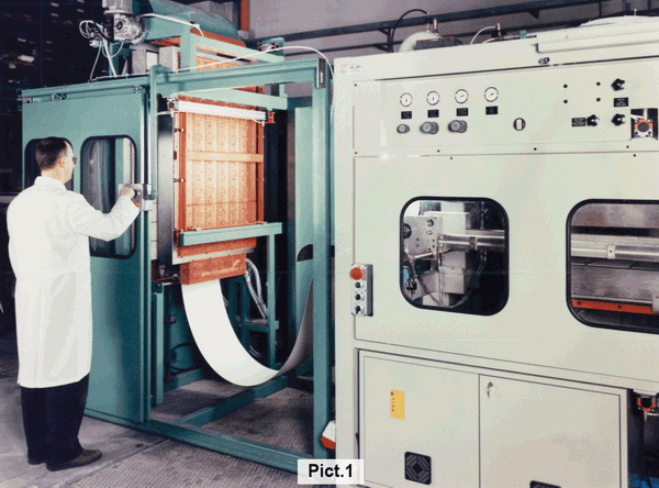 In order to avoid these drawbacks, it is necessary to preheat the foil to allow the "stress relaxation" of the material before placing it on the transport chains of the thermoforming machine and consequently obtaining a homogenous temperature in the core of the sheet through a slow but uniform heating process. The stress relaxation is obtained by pre-heating the material gradually and under "free" conditions before the thermoforming process as the polypropylene tends to distress naturally during heating when it is not being blocked in the chains.