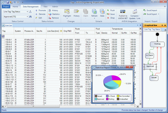 With an accessible user interface based on Microsoft® Office Fluent™, including built in spreadsheet style tools, AVEVA Engineering is highly configurable incorporating a powerful programming language (PML) and .NET APIs. This allows customer/industry customisations and automations to be applied quickly and effectively. In-built status control gives engineers better visibility of the quality of information as they work. Compare and update utilities enables data to be compared against information held in other systems and selectively updated as required, making data alignment easier and faster.