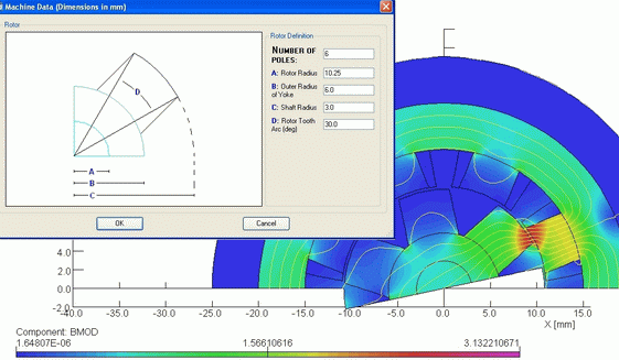 Cobham's Machines Environment is an application-specific extension to the well known Opera electromagnetic simulation package. It provides a front-end to the simulator that speeds design entry by means of Wizard-style dialog boxes. Users select the style of motor or generator they want to design from a library of all common types, including induction, brushless permanent magnet and switched reluctance motors, and synchronous motors or generators. Then, dialog boxes allow the user to enter parameters to define mechanical geometry, material properties and electrical data, and the FEA model is automatically created.