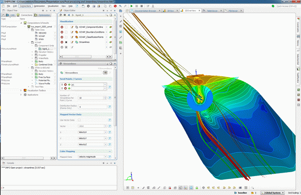 A major update is also the much improved SHIPFLOW Design. This new version of SHIPFLOW Design is based on Friendship Framework 3.0 which is also a new major release. Full post processing within SHIPFLOW Design is the big news. This means no more switching programs in the middle of the work process. It allows the user to stay within the same user interface for the complete hydrodynamic design and optimisation process. Other minor developments are for example an even more capable fully automatic iges import which can handle also twinskeg hulls. There is no more need to manually create offsets, just specify what IGES-file to use and SHIPFLOW handles the rest.