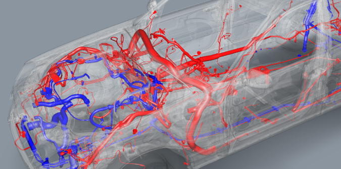| IDO:Flexible will assist you in your endeavours to integrate flexible components in digital product development in real time. It can be used wherever hoses, cables and cable harnesses are planned, laid and checked. Thus, the number of cable laying steps on a real vehicle prototype can be clearly reduced thanks to the use of IDO:Flexible. Not only time and costs are saved. Quality is improved on vehicles thanks to the avoidance of errors. |