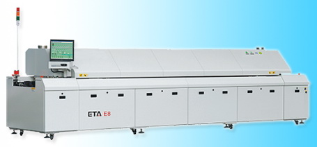 Eight groups of top and bottom forced hot air convection heating zones.