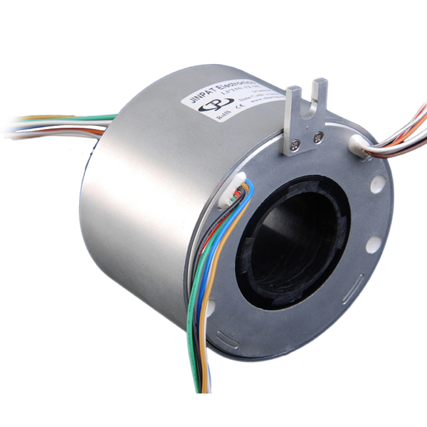 | The unobstructed bore through the center provides routing space for hydraulics, pneumatics or for a concentric shaft mount. Our through bore slip rings feature our fiber brush technology which offers several advantages over conventional slip ring technology including multiple points of contact force per fiber and low contact wear rates. In addition, fiber brushes do not require lubrication and produce virtually no wear debris. The through bore from 12.7mm, 25.4mm, 38.1mm, 50.00mm to 500mm are optional. The current from 2A to 300A are optional, which can satisfy your different schemes. |