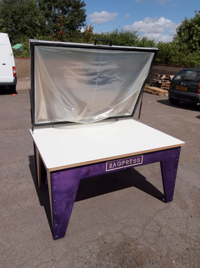 We offer two sizes of our standard FramePress which have been designed to offer the convenience of a framed membrane system but at a lower cost than the Pro versions. The lacquered 24mm thick birch ply frame is very sturdy and each leg is fitted with a levelling foot so that it can be adjusted in situ to ensure that the bed is flat. The bed itself is made out of solid 16mm thick high pressure laminate machined with groove pattern to aid the evacuation process.