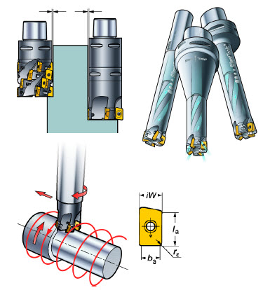 ??urn milling, roughing and finishing, using one or more dedicated wiper inserts available in size 11 and 18 and radius 0.8 and 1.6.