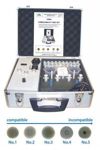 The JOWA COMPATIBILITY TEST KIT is a portable test kit which checks the compatibility of blend fuels to avoid the risk of sludge forming and flocculation in the blended fuel.
