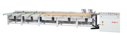 In-line in- and out-feeder pitch set for pieces 300 mm. wide